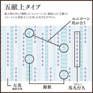 伝統ある献上柄の中に魔除けのお守りとされる「蹄鉄」と