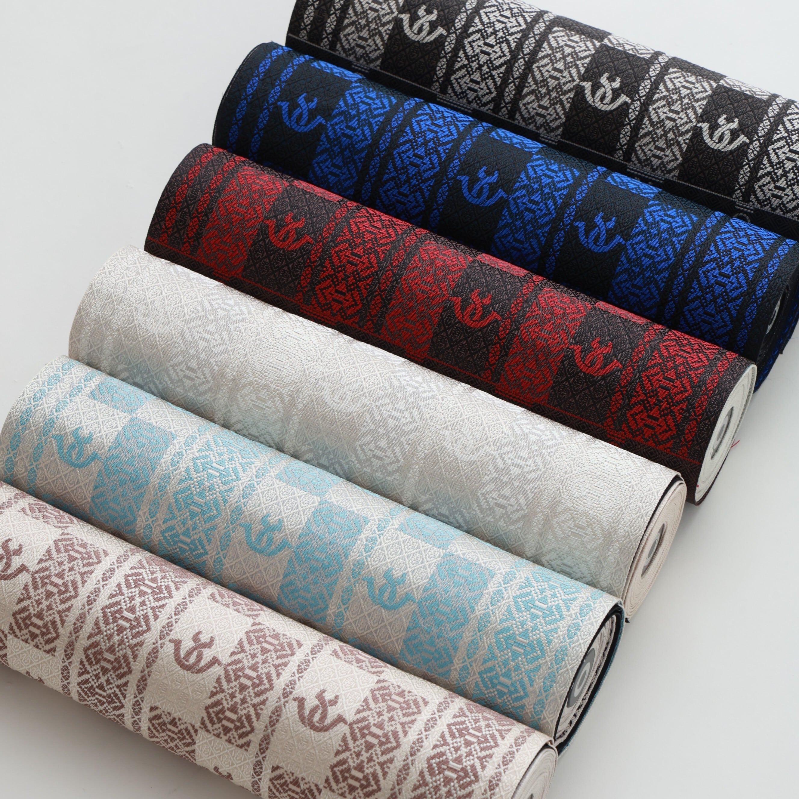 博多織の象徴である独鈷・華皿柄に「蹄鉄」を織り込み