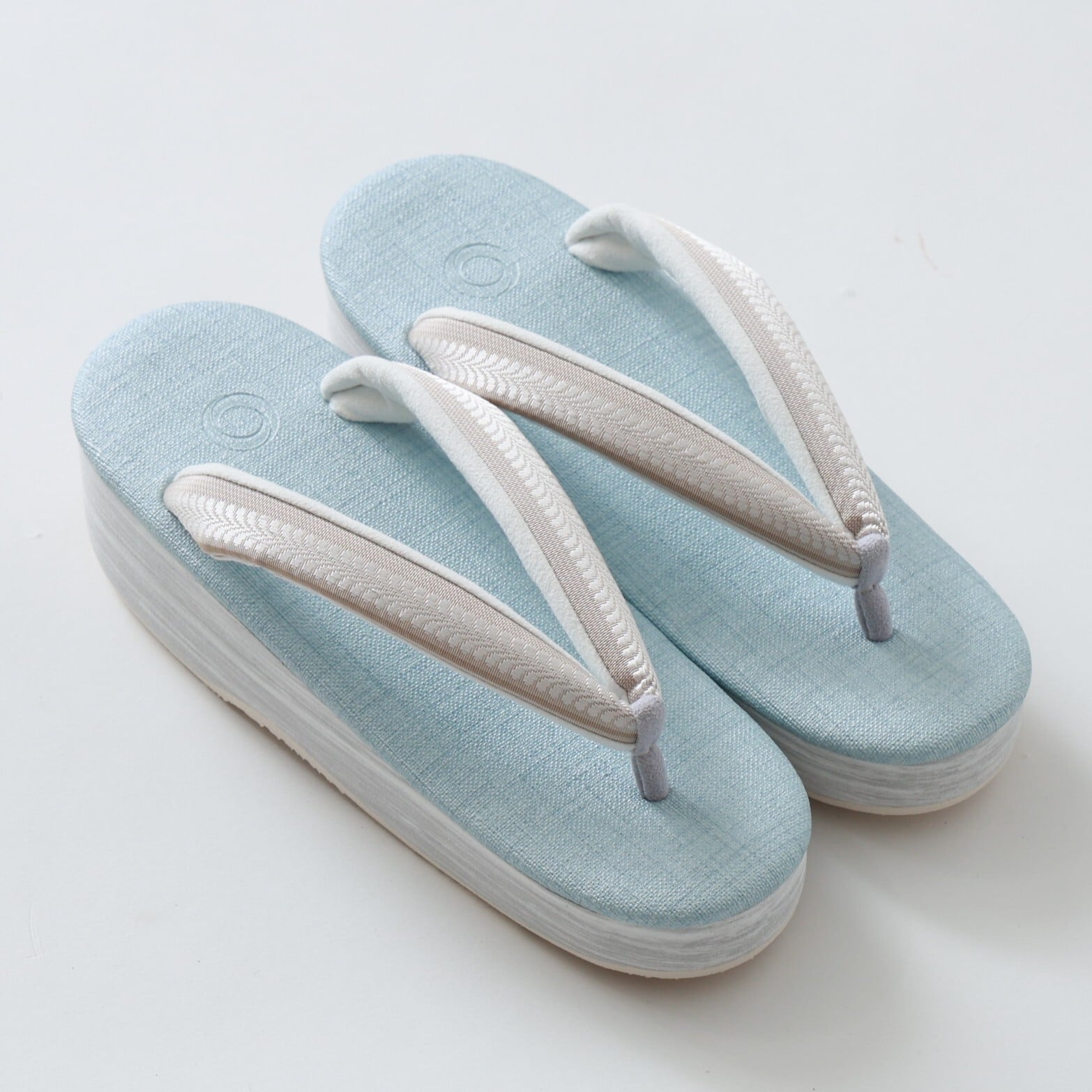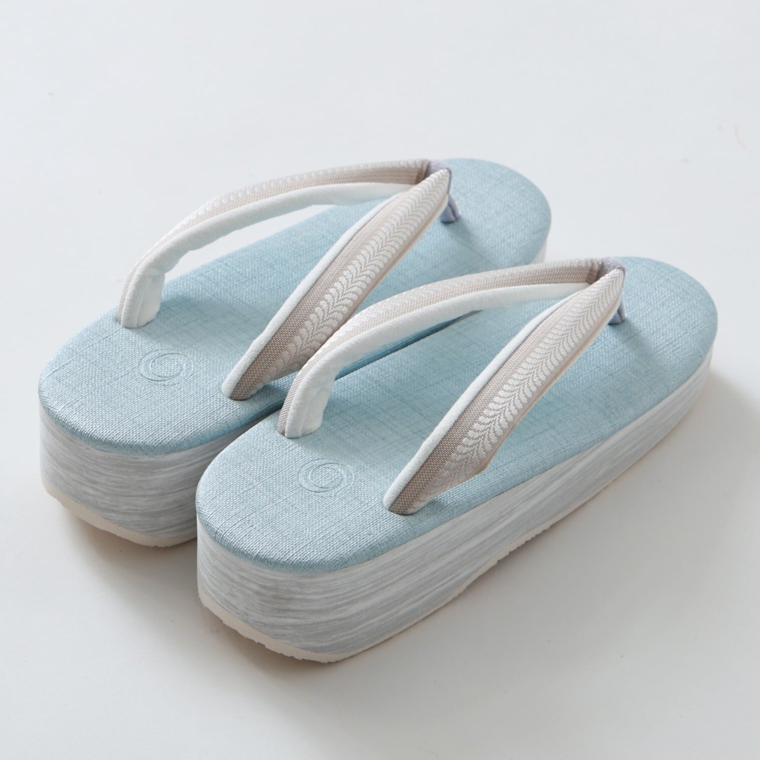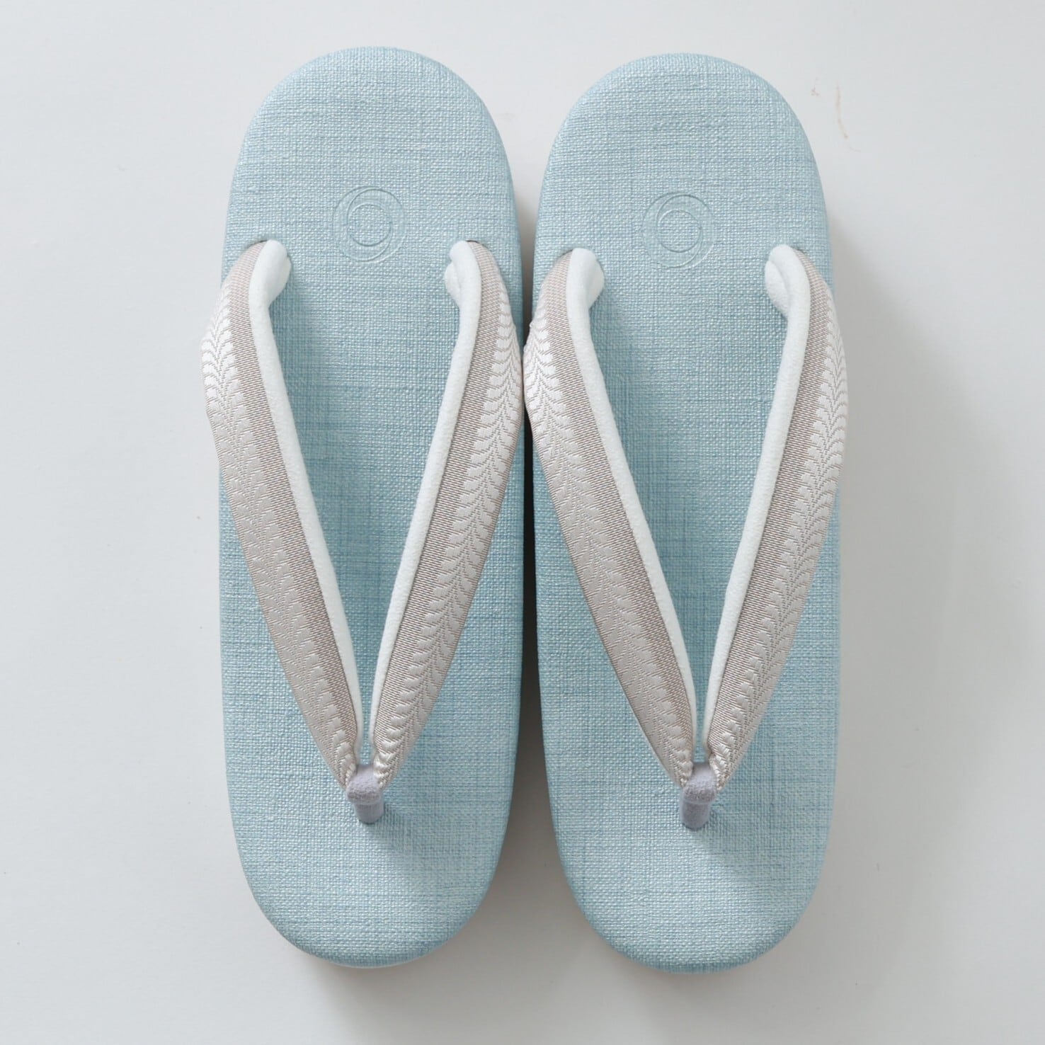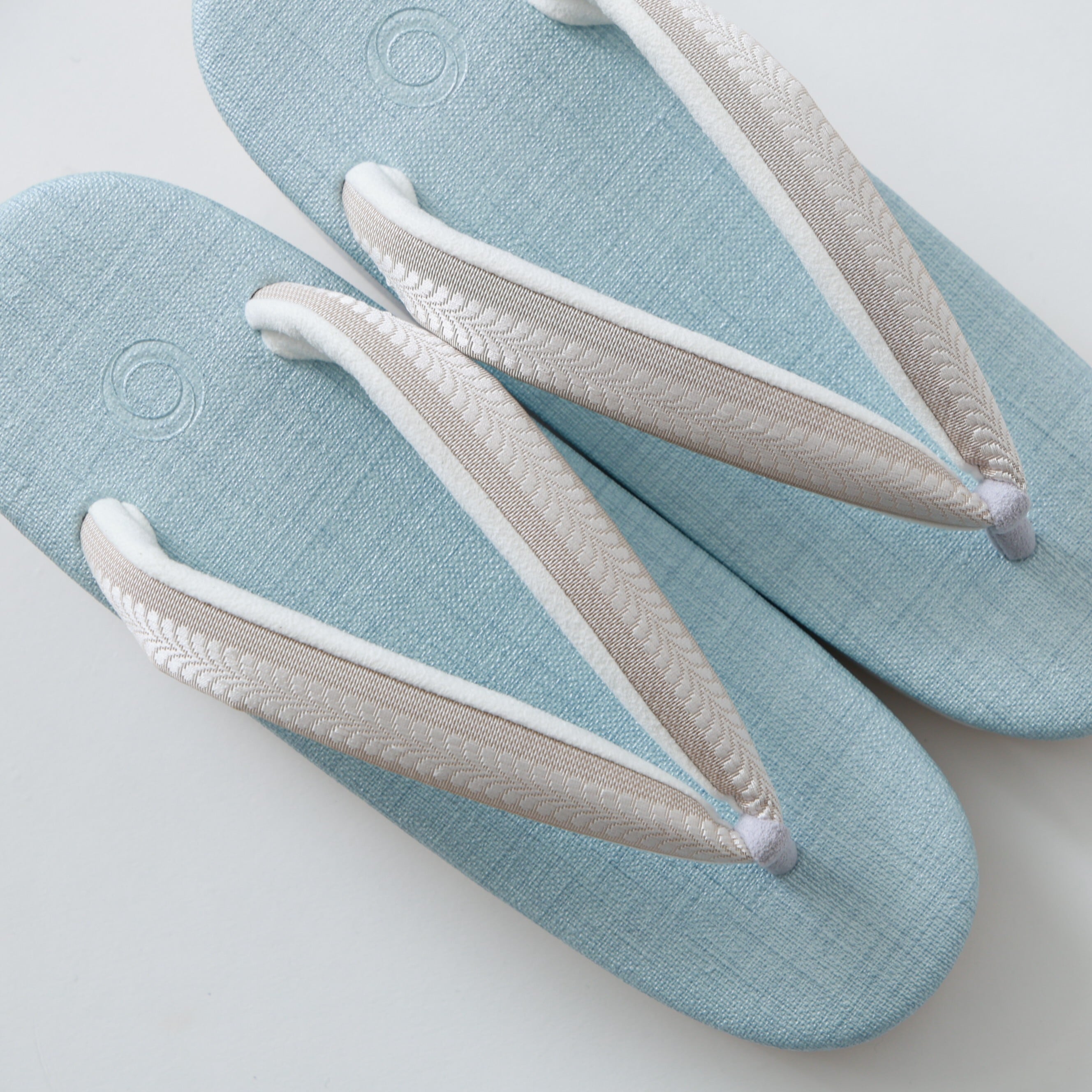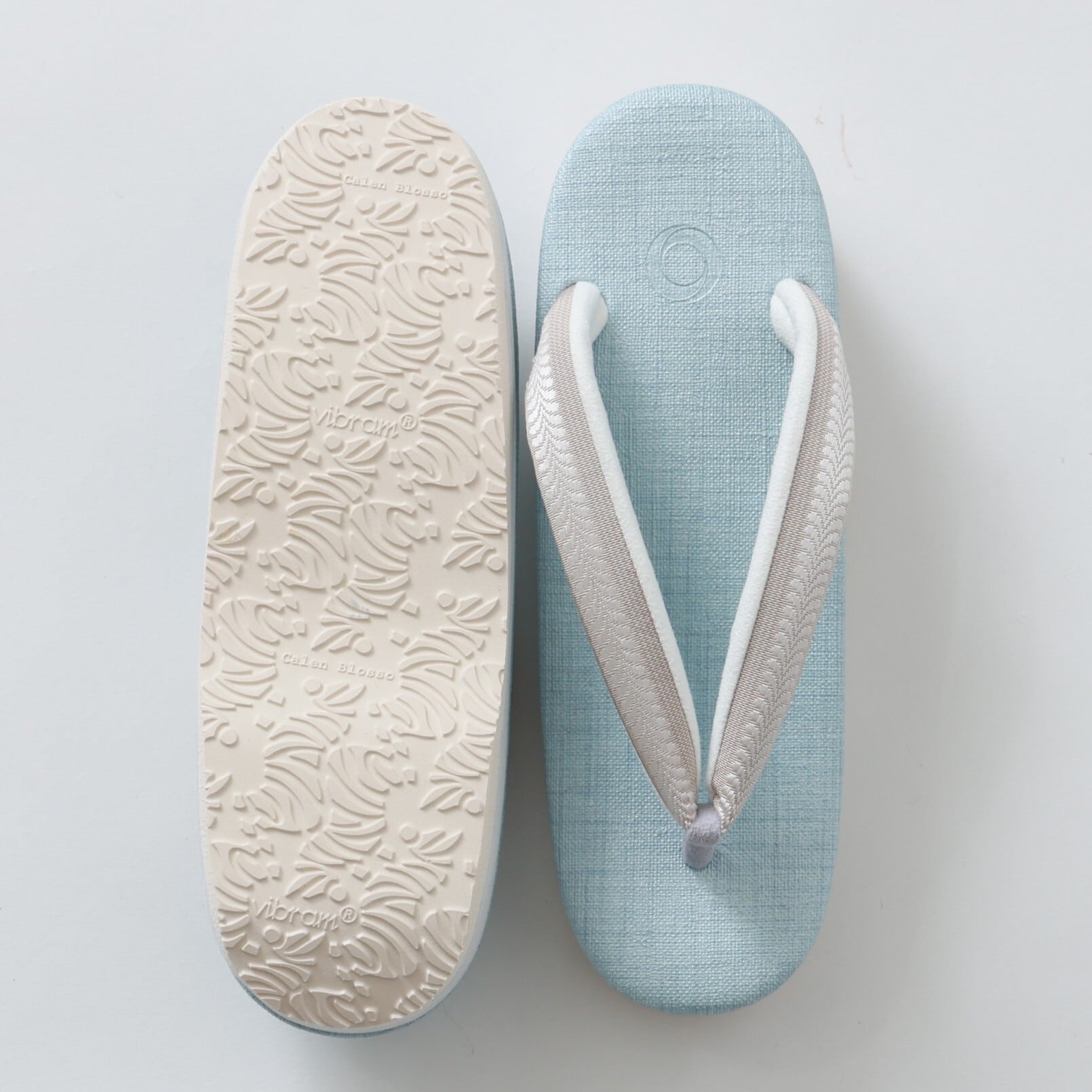 .菱屋カレンブロッソ×OKANO カフェ草履 :水色×ベージュ レディースM