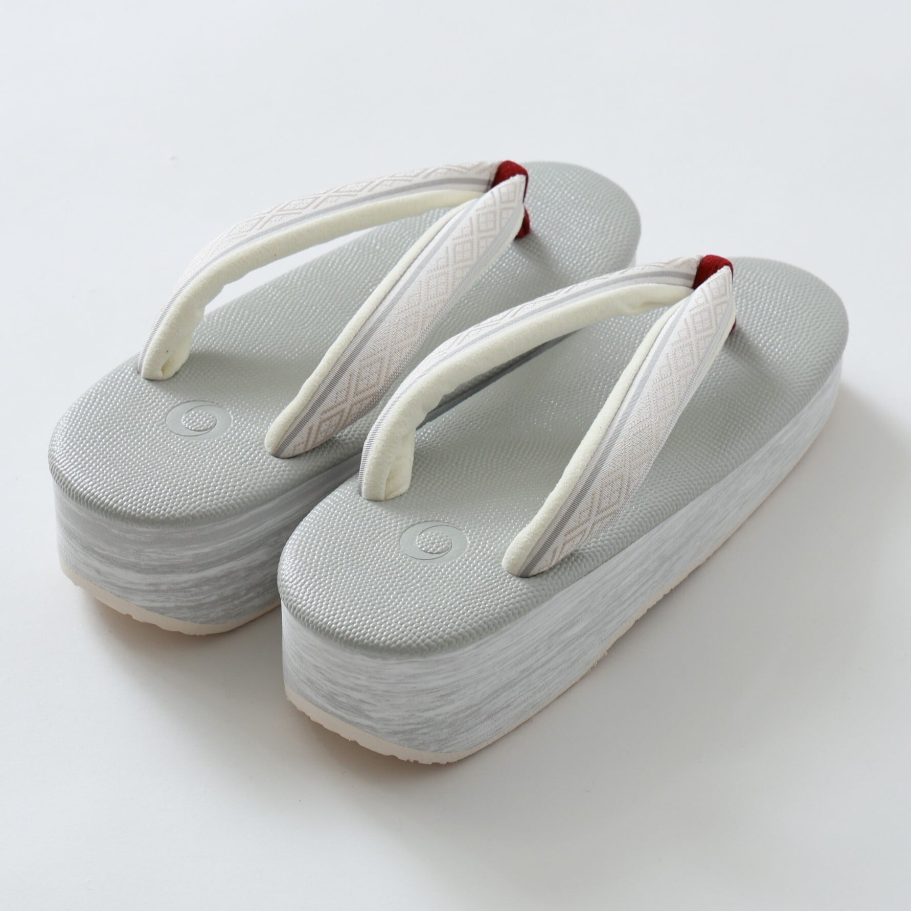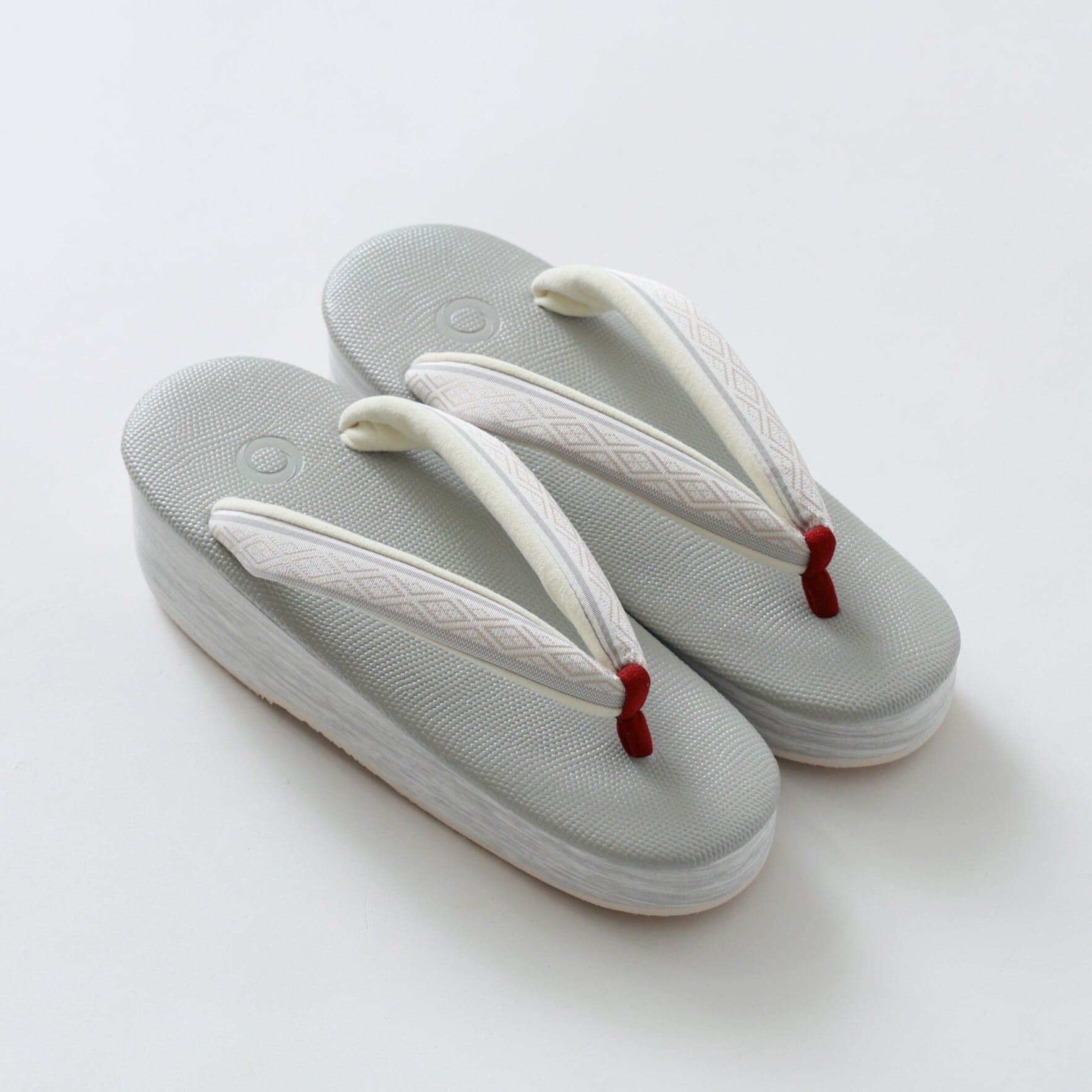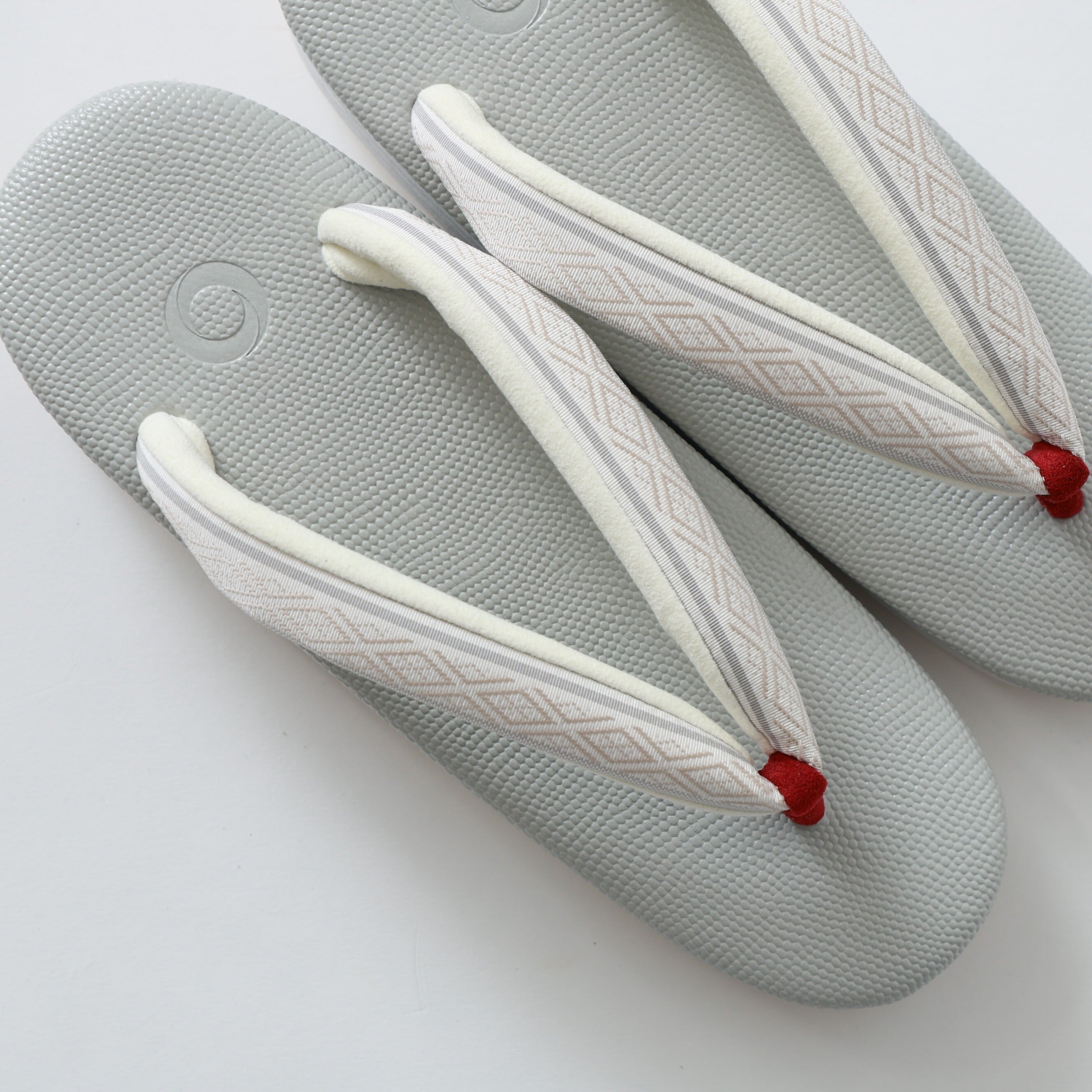 .菱屋カレンブロッソ×OKANO カフェ草履 :グレー×白 レディースL
