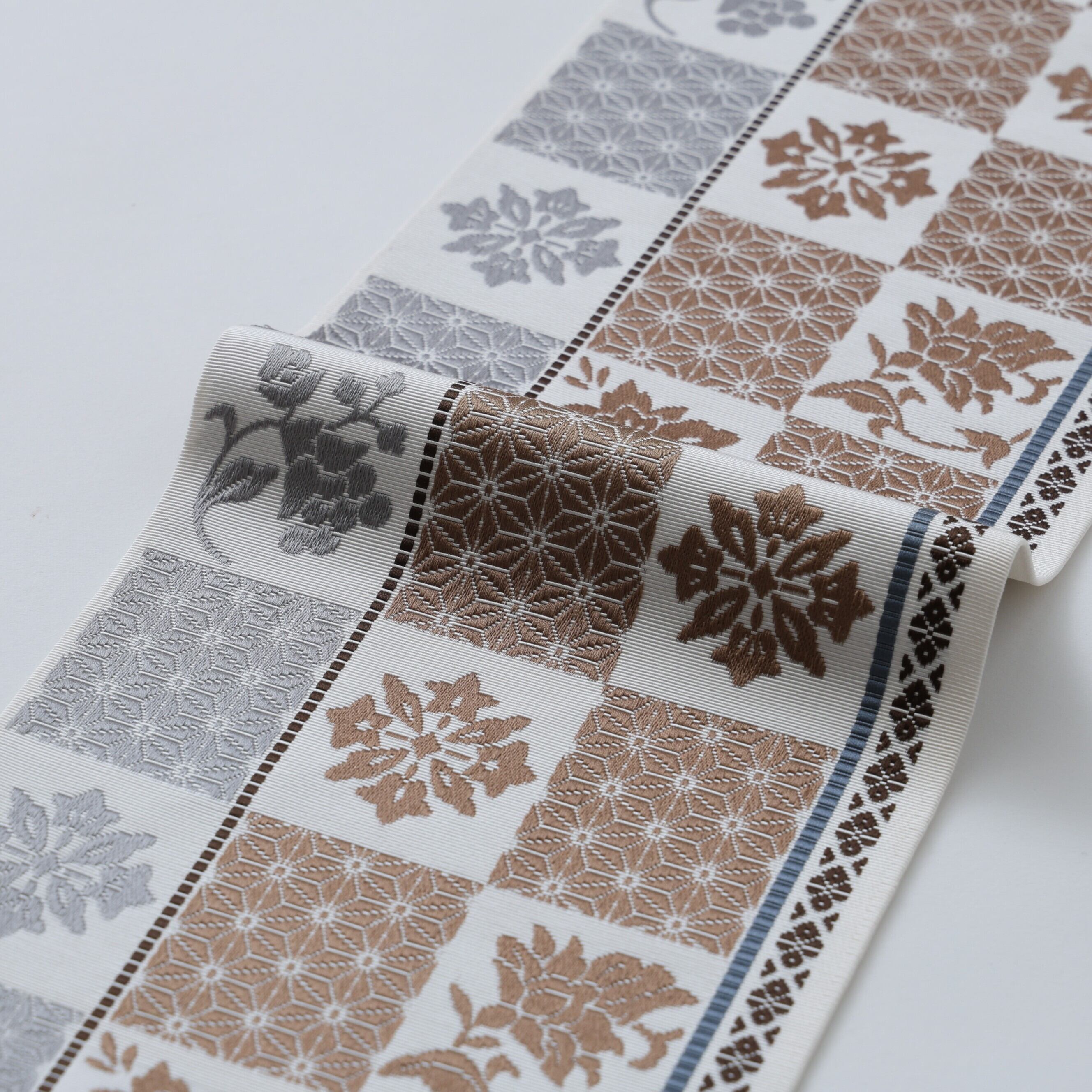 透け感のない平織りの博多帯は、季節を問わずオールシーズンお使いいただけます。春・秋・冬の普段着着物から、夏の浴衣まで、装いの中心として幅広く活躍します。