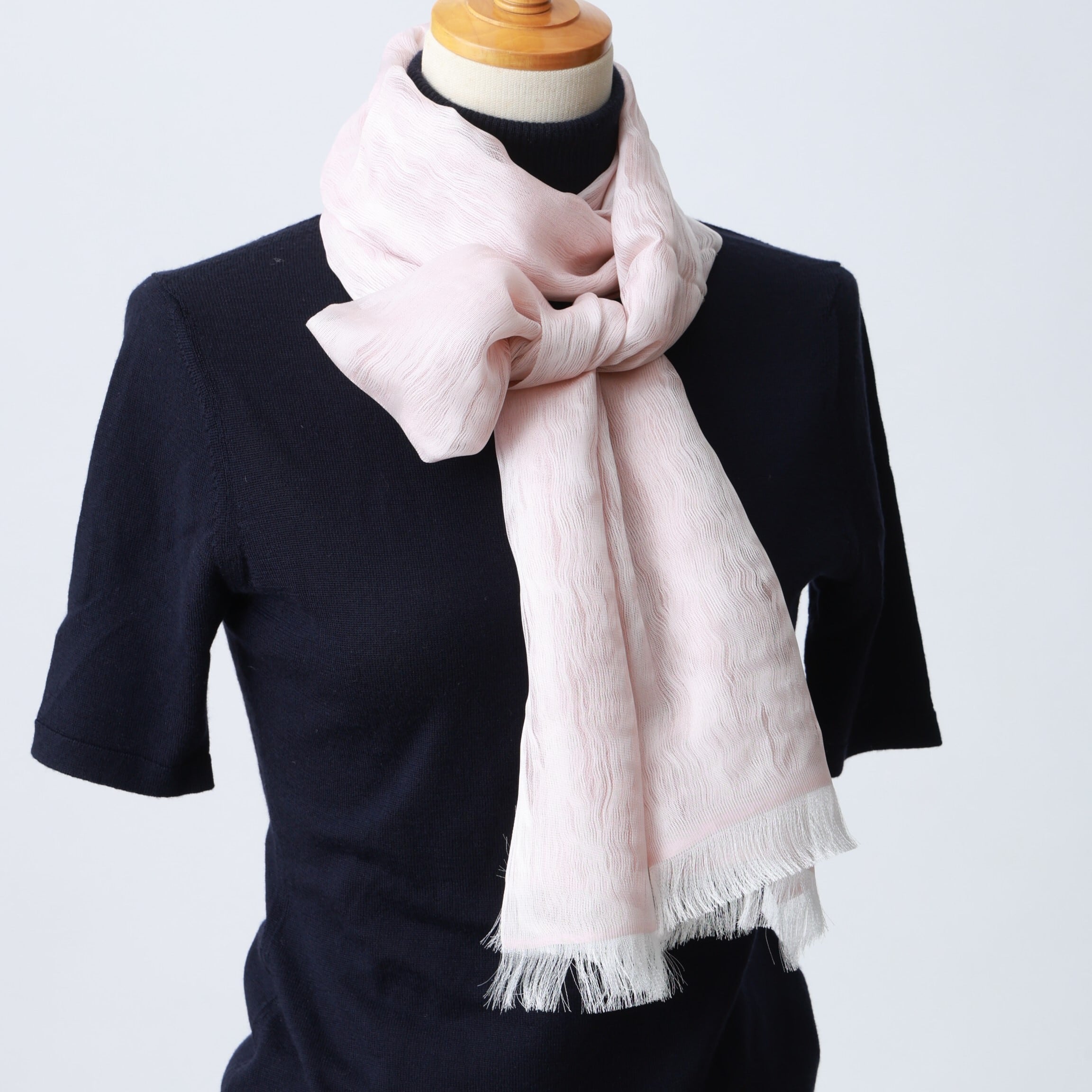 薄手に仕上げた織りに手加工で揺らぎ表現を加えた涼しげなストールは「30g」という驚きの軽やかさ。