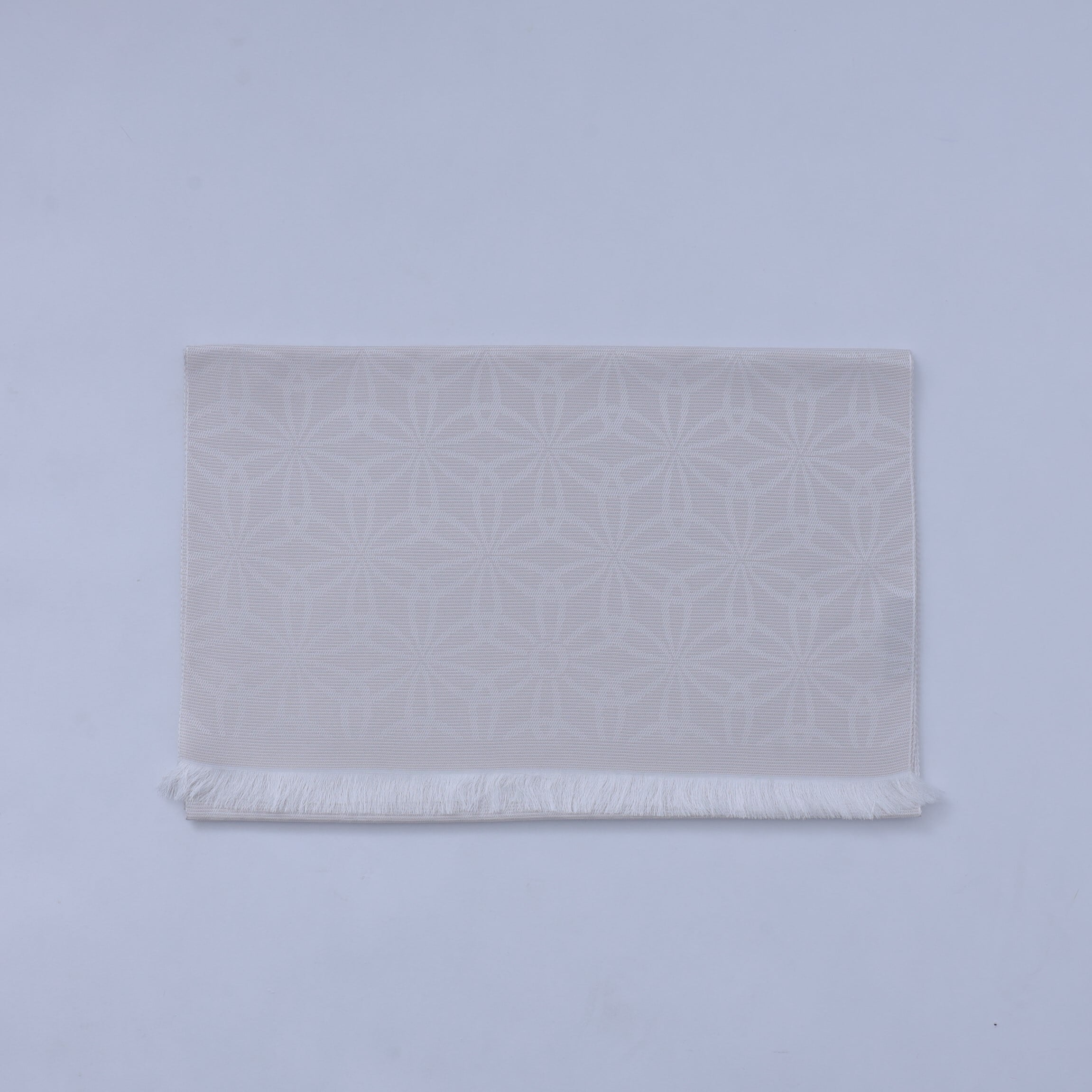 着物と同じ機(はた)で、着尺と同じく3,840本のたて糸で織り上げた博多織のストール。織元らしく織組織にこだわり、従来のストールよりもスリップ(織糸の目寄れ)しにくい、柔らかいながらもしっかりした肌触りに仕上がりました。